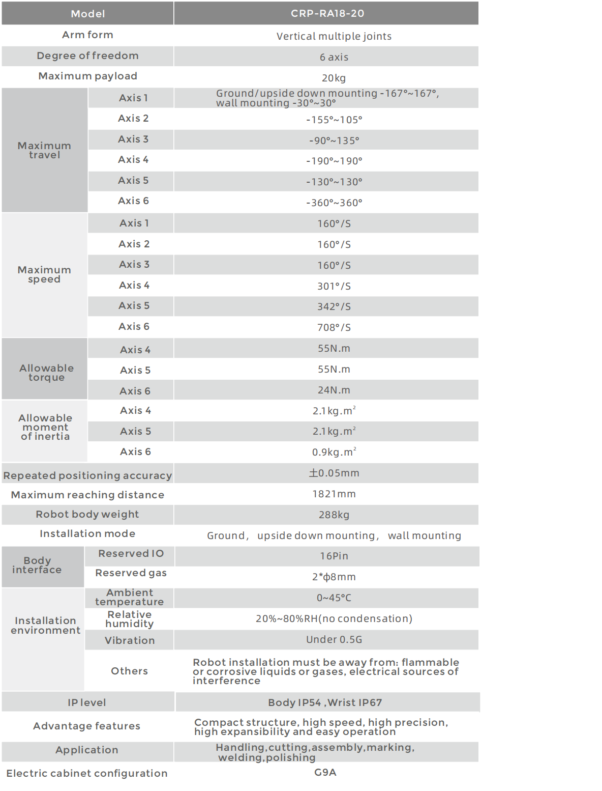 The design of the robot is highly compact, which is more light weight, especially the wrist is slender, so it can be applied in more scenarios.